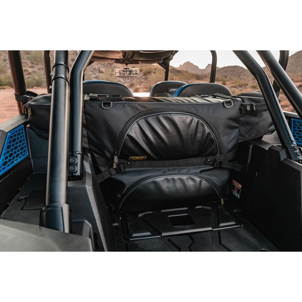 - Made from top quality UV treated, water resistant Tri-Max Ballistic Nylon with Fibertech accents, the RG-004 RZR/UTV Rear Cargo Bag cleverly expand your storage options by taking advantage of the unused space on your roll cage