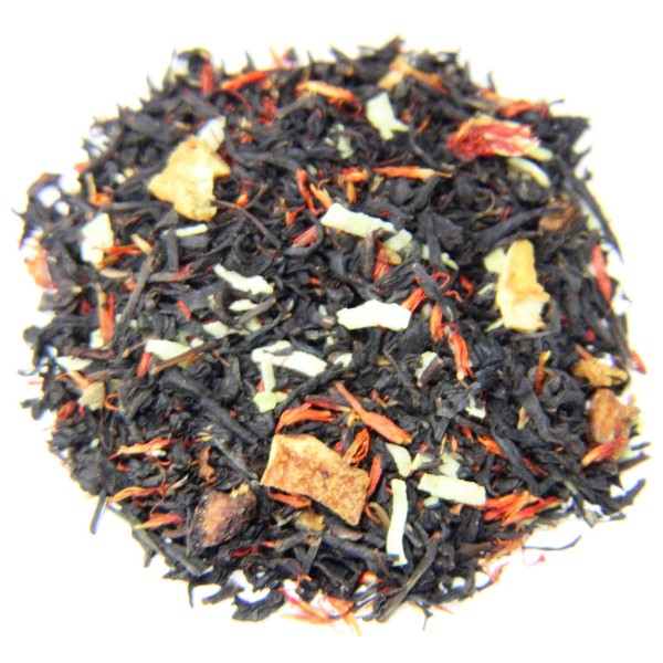 - Ingredients: Black tea, orange peel, coconut, safflower, natural flavors