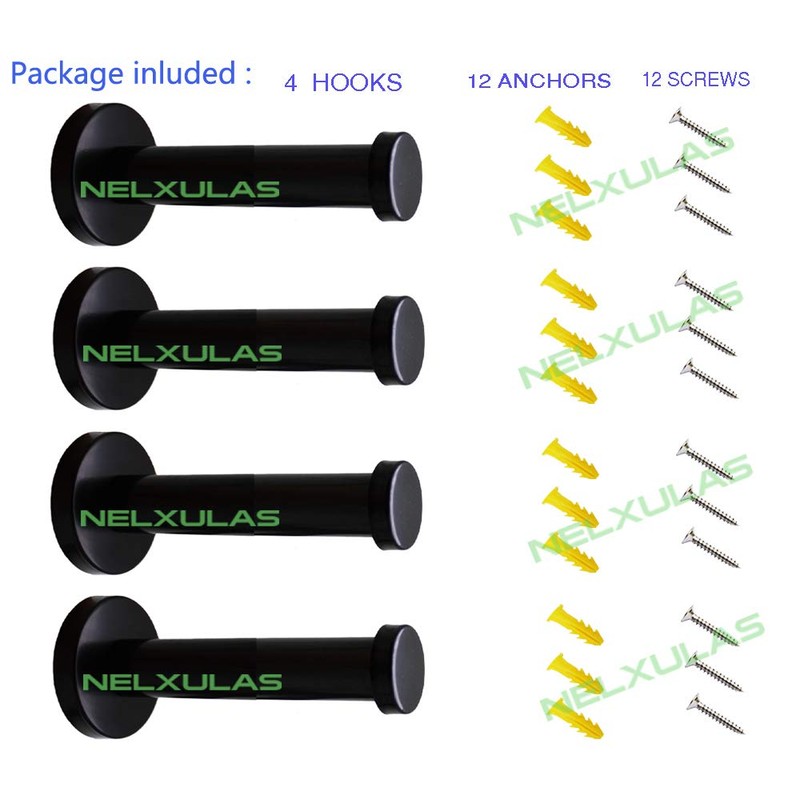 NELXULAS Classic Black Stainless Steel Heavy Duty Wall Mount Hooks, Bath Towel Hooks, Coat Hanger, Handbag Hooks, 4 in Pack (4")