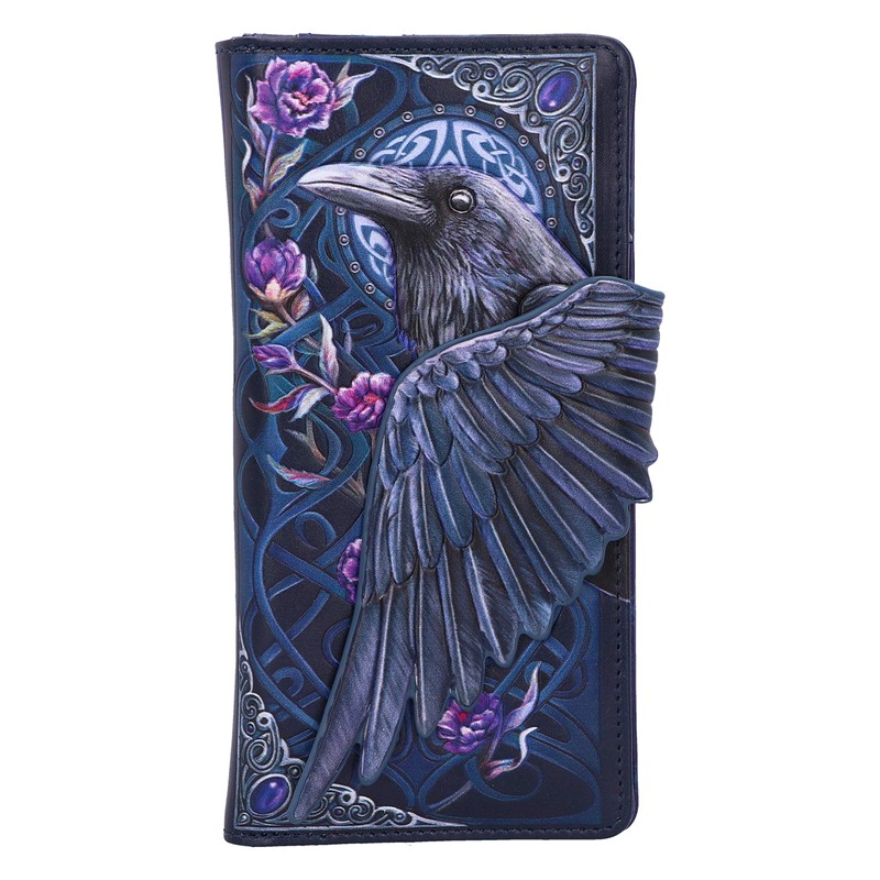 Nemesis Now Ravens Flight Black Wing Floral Embossed Purse Wallet, Polyurethane, 18.5cm