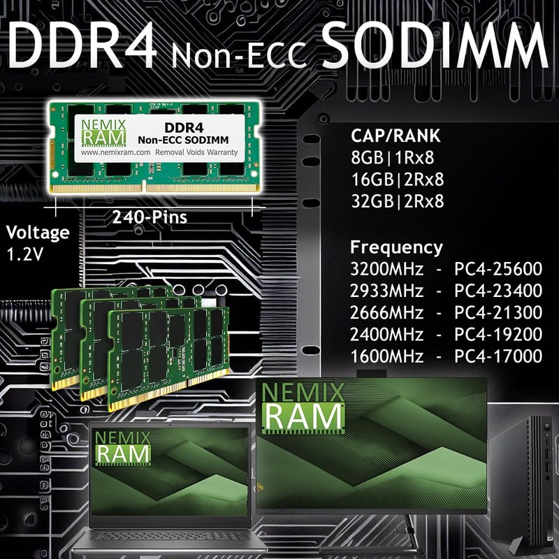NEMIX RAM 32GB (1X32GB) DDR4 3200MHZ PC4-25600 2Rx8 1.2V CL22 260-PIN Non-ECC...