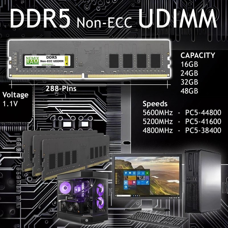 NEMIX RAM 64GB (2X32GB) DDR5 5200MHZ PC5-41600 2Rx8 1.1V 288-PIN Non-ECC Unbuffered UDIMM Desktop PC Memory KIT Compatible with ASRock Z790 Taichi | Z790 Taichi Carrara | Z790 Taichi Lite Motherboard
