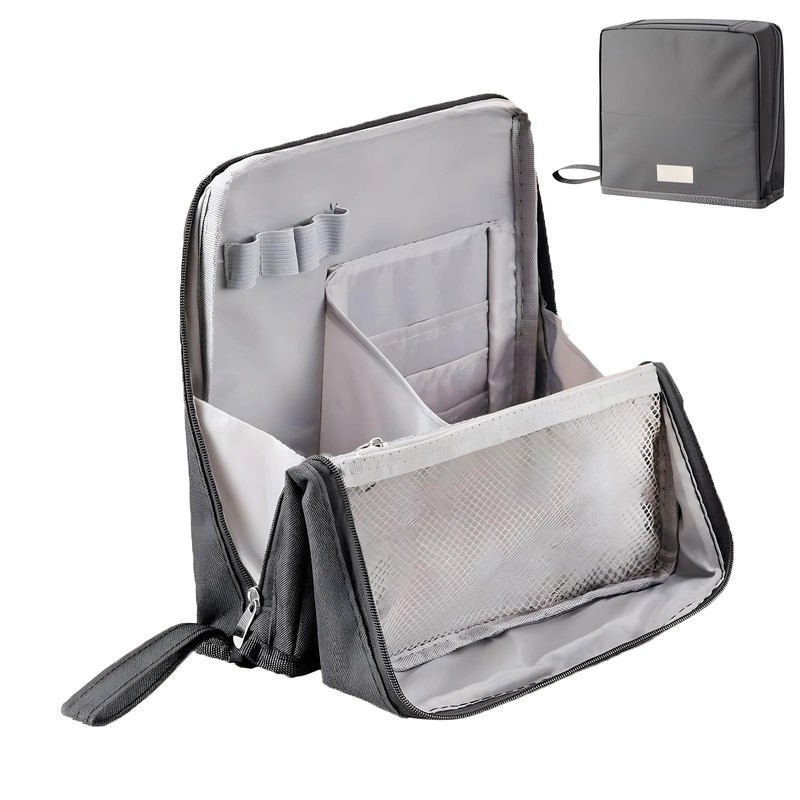 Nemocon Makeup Bag,Standing Makeup Bag – Portable,Large Capacity Multi-purpose Large Capacity Oxford Cloth Standing Makeupbag Portable, Aterproof,Compartments and Handle (Grey)