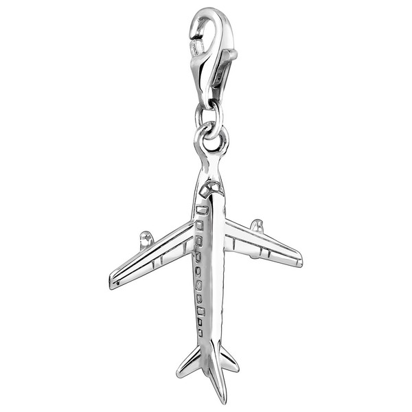 Nenalina 713053-000 Aeroplane Carabiner Charm Pendant for Charm Bracelet 925 Sterling Silver, Sterling Silver, No Gemstone