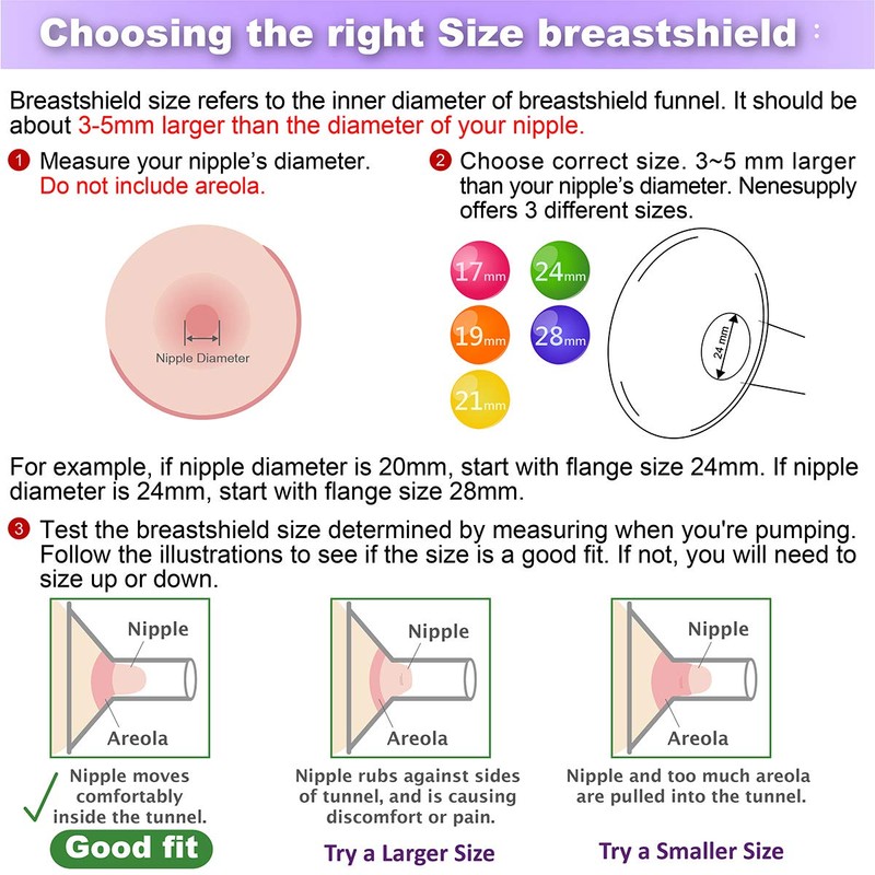 - COMFORTALBE DESIGN: LONGER TUNNEL and SMOOTH ANGLE. Suitable for long-nipple moms. MORE SIZES MORE COMFORT. Available in 19, 21, 24, 28mm.