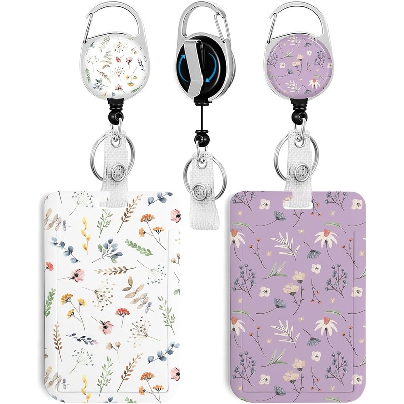 - Package Includes: 2 pack retractable name badge reels in purple and cream colour with a diameter of 1.26"/3.5cm, practical size for easier carry and use