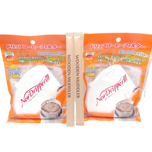 Neo Dripper3 Coffee Filter, 20 Count Natural Wood Muddler Disposable Set of 2