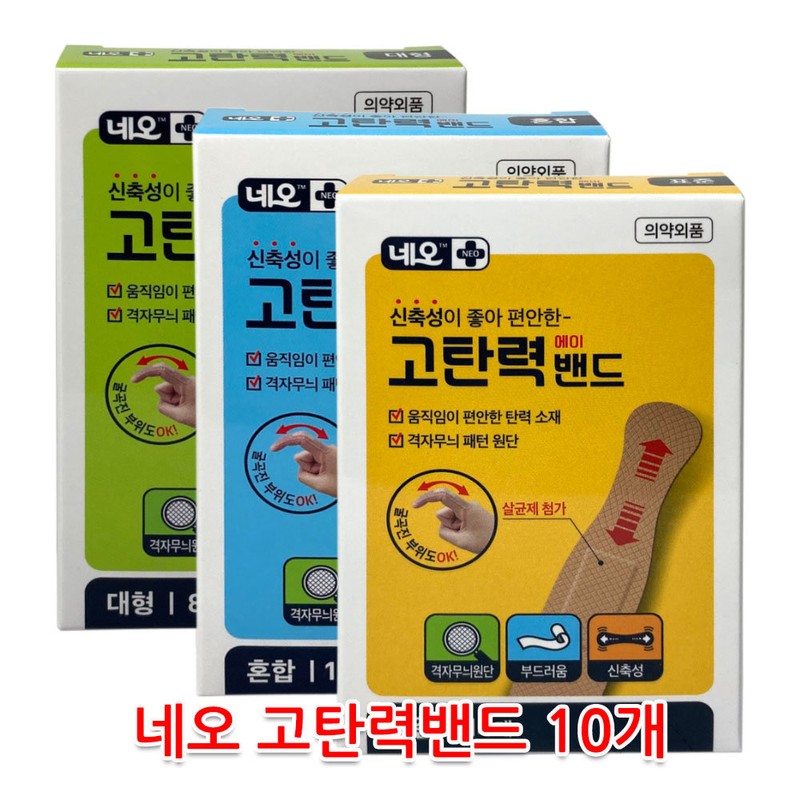 Neo high elasticity band 10 pieces/standard mixed large size/elastic curved area wound band, mixed 10 pieces / 네오 고탄력밴드 10개/표준 혼합 대형/신축성 굴곡진 부위 상처밴드, 혼합 10개
