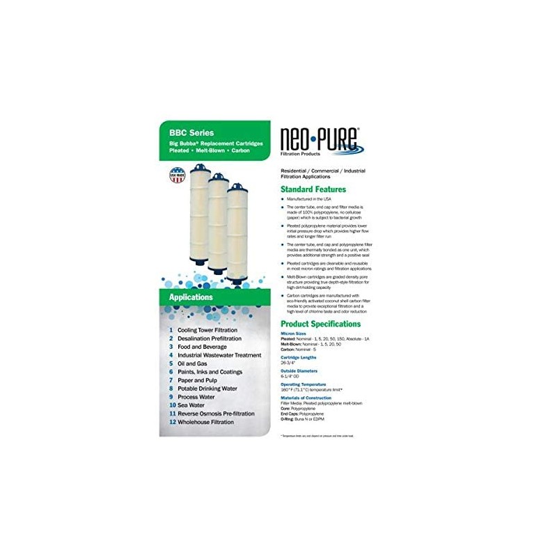 Neo-Pure BB150-PH20 Big Bubba 20 Micron Pleated Filter Cartridge Compatible with Watts BBC-150-P20 Big Bubba BBH-150 housing