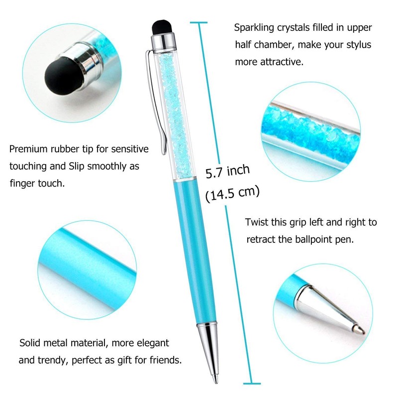 • One hundred and sixty clear sparkling crystals are found in the body of the pen as an emphasis of its beautiful design. Great accurate responsiveness and long-lasting durability with stylus tip compared to many other capacitive styles. This is a MUST HAVE!