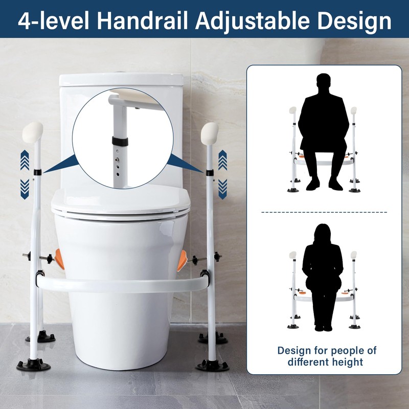 - Handrails Height Adjustable Design: 4-level adjustable height 24.4"-28.4", perfectly fits people of different height; The toilet handles for elderly and disabled provide stable support, significantly reduces joint pressure and lowers the risk of falls