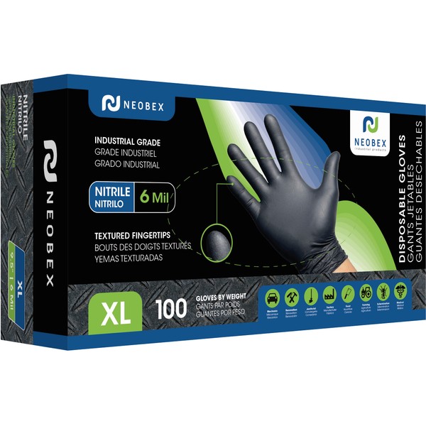 Neobex Black Nitrile Gloves, 6 mil, 9.5" lenght, black, textured fingertip, disposable protective equipment (Pack of 100) (Small)
