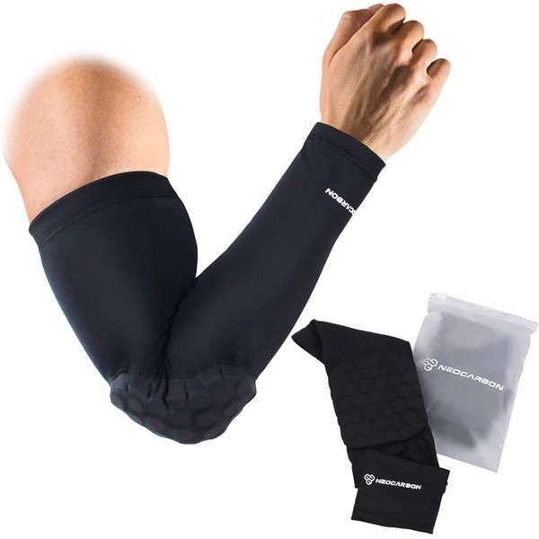 NeoCarbon Codera Deportiva de Neopreno contra Impacto (1 par), Compresión Ajustable para Brazo con Protector de Espuma en el Codo, Negro Chica