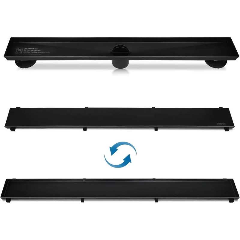 Neodrain 18-Inch Linear Shower Drain,with 2-in-1 Flat & Tile Insert Shiny Black Cover, Rectangle Shower Floor Drain, Linear Drain with Adjustable Leveling Feet, Hair Strainer