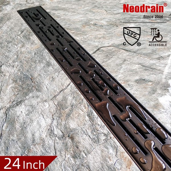 Neodrain 24-In Rectangular Linear Shower Drain with Brickwork Pattern Grate, Brushed 304 Stainless Steel Bathroom Floor Drain,Antique Copper Finish,Shower Floor Drain