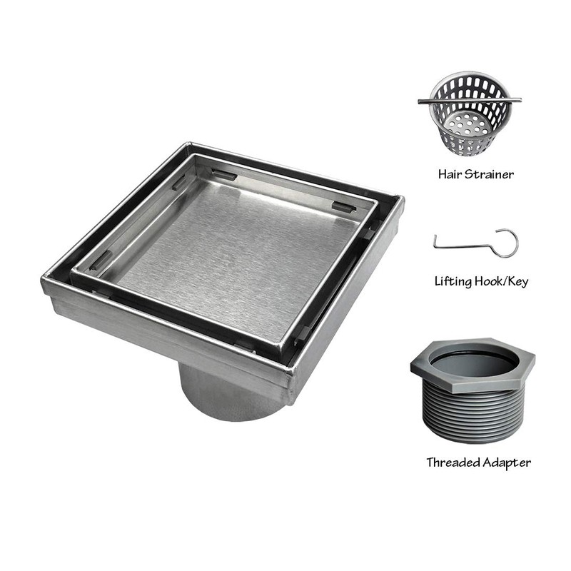 - √Threaded Adaptor with rubber O-ring aids adjusting the height of Square drain and securing the Square drain to the flange, leak-proof and compatible with most 2” PVC, ABS, and Cast Iron Drain Base FlangesA removable grate makes it easy to clean;