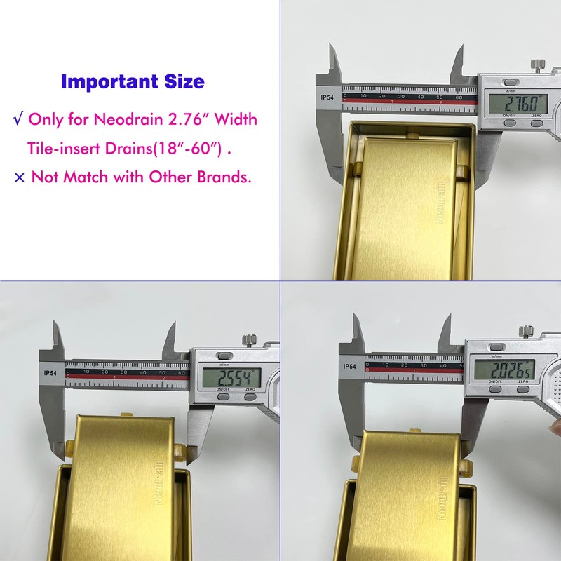 - ▶ONLY For Neodrain 18”-72“ tile drains. (2.76“ width shower drain channel, 2.02“ width tile-insert linear drain cover)