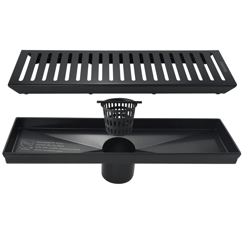 Neodrain Linear Shower Drain with Removable Grate, 12 Inch Shiny Black, with Watermark&CUPC Certified, Includes Hair Strainer