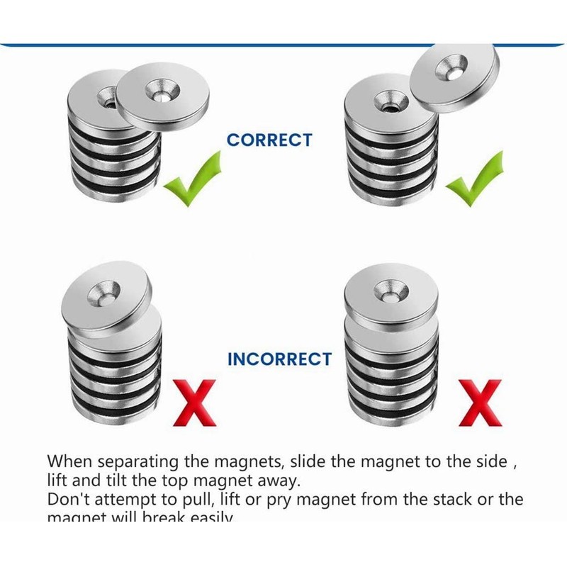 - NOTES-If you want to separate this Round Pot Magnets,Slide a magnet from the top of the stack.Once you have turned off the stack, gently lift the magnet.Lift the magnet to free it from the stack.avoid mutual collisions and external impacts that cause magnets to break!