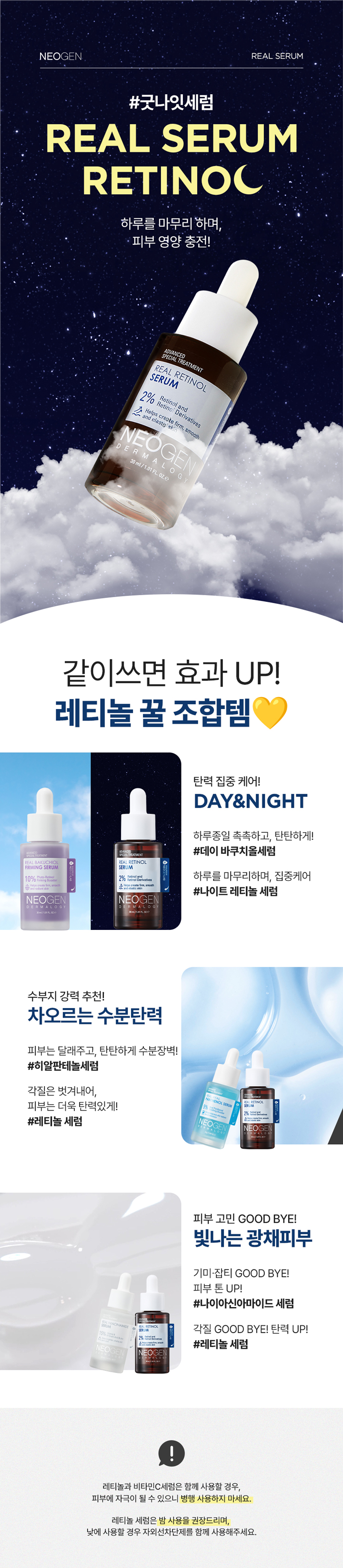 | 사용방법 | 저녁 세안 후 토너로 피부 결을 정돈하고 적당량을 덜어 고민 부위에 부드럽게 펴 발라 흡수시켜줍니다.* 눈가 주변 사용 시 눈에 들어가지 않도록 주의하여 사용해 주세요.* 레티놀 성분에 민감하게 반응하는 경우에 해당할 수 있으니 사용 전 패치테스트를 권장드립니다.* 낮에 사용할 경우 피부 감수성을 증가시킬 수 있으므로 밤 사용을 권장드립니다.(낮에 사용할 경우, 자외선 차단 제품을 함께 사용해 주세요.)* 스크럽, 각질 제거 제품, 비타민C 제품과 병행 사용하지 마십시오. |