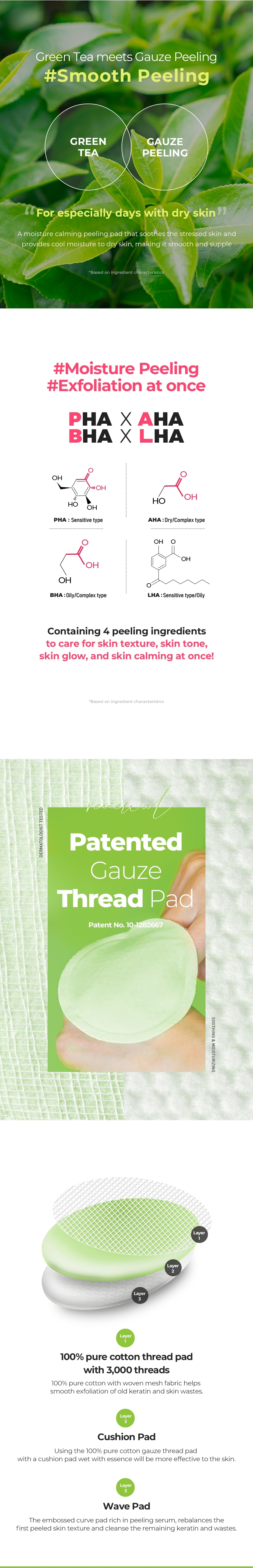 Neogen [JIU&YOOHYEON PICK] Neogen Dermalogy Green Tea Moist PHA Gauze Peeling 30 Sheets - Green Tea Moist PHA Gauze Peel