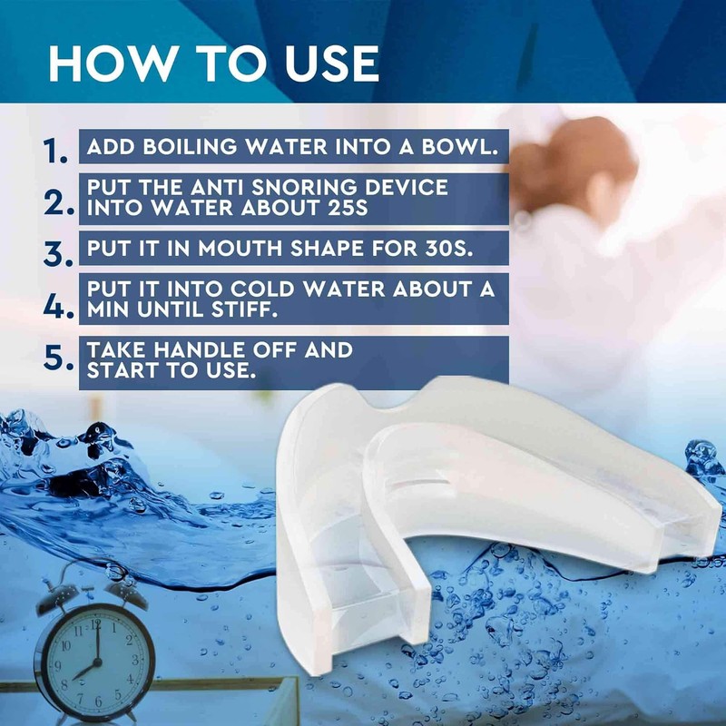 - ✔ Easy to Use & Mold – Simply heat the mouthpiece in hot water for 15 seconds, cool it slightly, and bite down to create a personalized fit. This ensures a snug, secure feel for enhanced comfort and effectiveness.