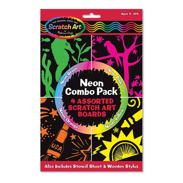 Neon Combo Pack: 4 Assorted Scratch Art Boards [With 4 Scratch Art Boards, Wooden Stylus, Instructions and Stencils]