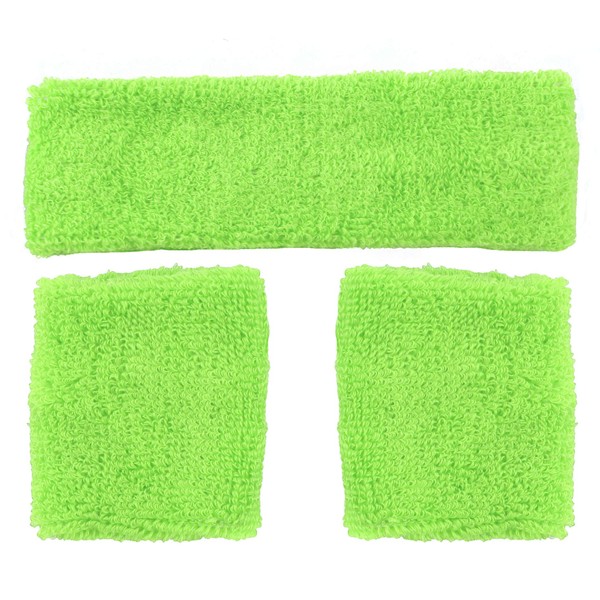 Neon Green Sweatbands Set 80s Headband and 2 Bracelets Green Party Carnival