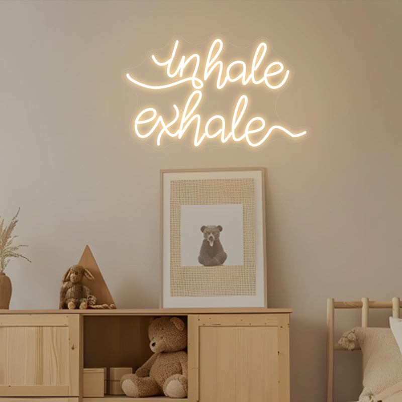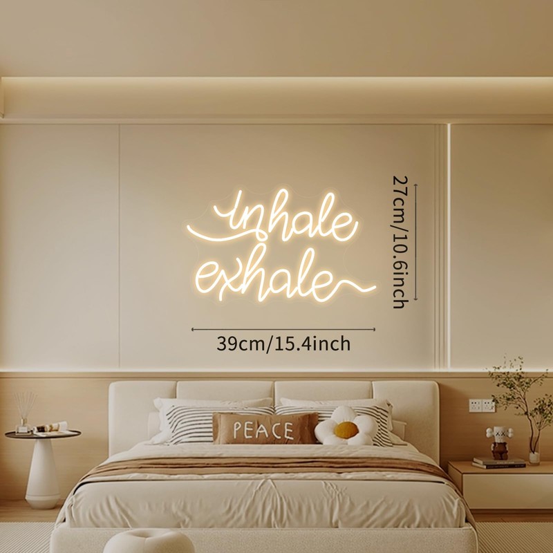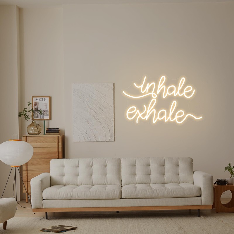 Neonawall Inhale Exhale White LED Neon Sign - Dimmable USB Wall Art 15.4x10.6 Inches - Yoga Studio Decor, Meditation Room, Spa Relaxation Lighting