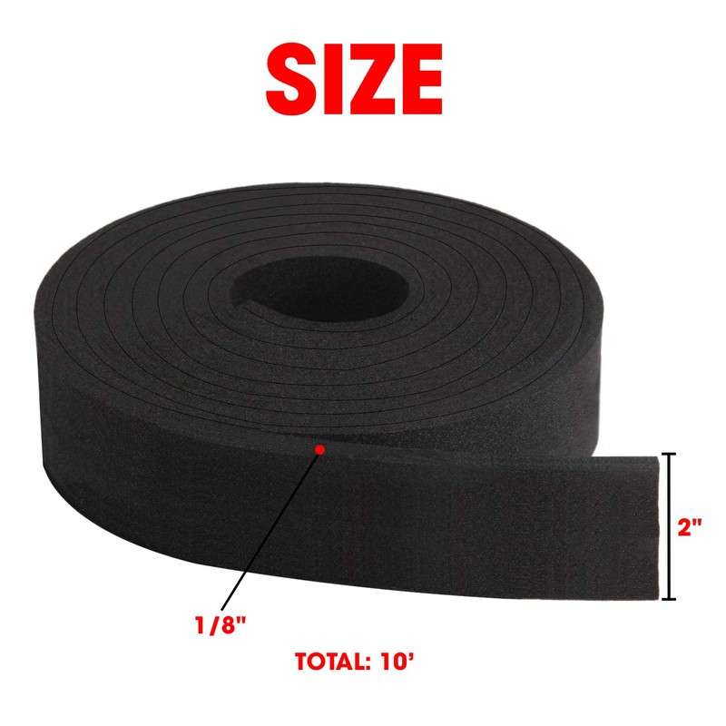 • [FOAM STRIP APPLICATIONS] Widely used in various door seal and window insulation, furniture, electrical cabinets, cars, speakers, toys, sports equipment, etc. This package includes 1 roll that measures 2 inch wide x 1/8 inch thick x 10ft long neoprene foam strip.