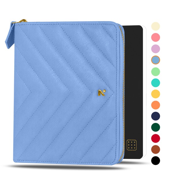 NEORAH — B6 Notebook SLEEVE with Compendium + Dotgrid JOURNAL | Faux Leather Sleeve + Penloop | 2 Front 1 Back compartment | 6 Card Slots –LIGHT BLUE