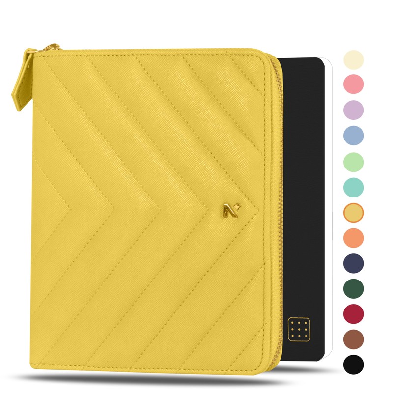 NEORAH — B6 Notebook SLEEVE with Compendium + Dotgrid JOURNAL | Faux Leather Sleeve + Penloop | 2 Front 1 Back compartment | 6 Card Slots –YELLOW