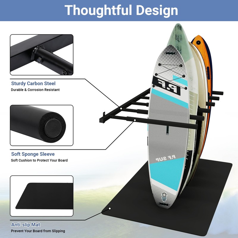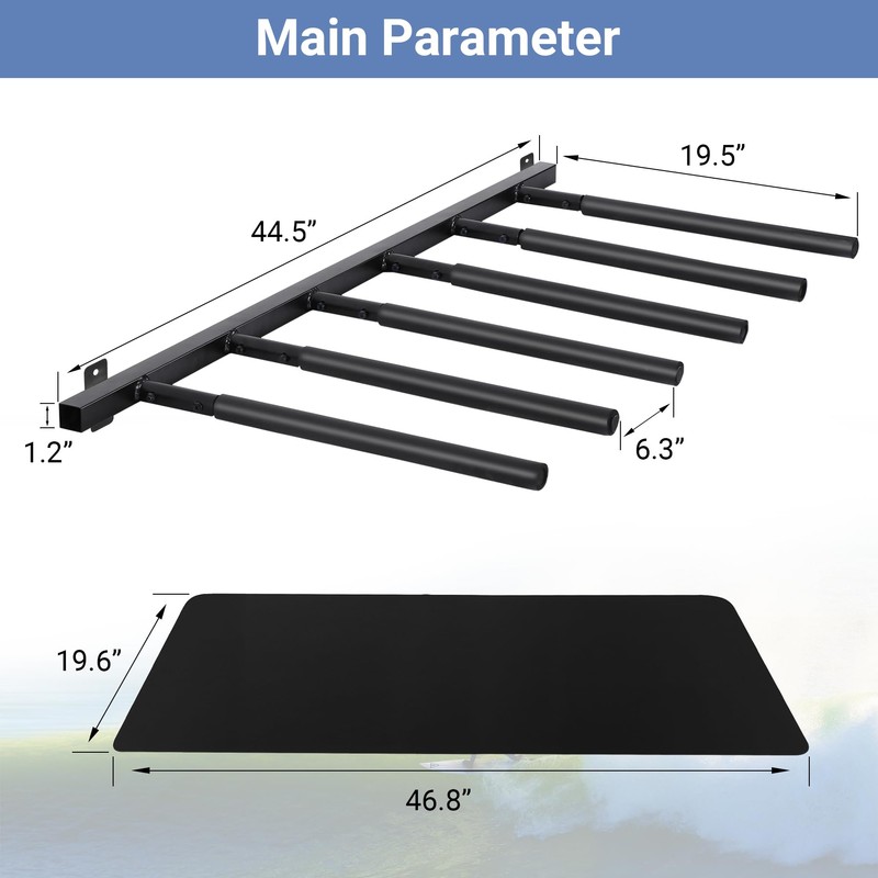 - 【Sturdy Structure】: Our premium racks made of sturdy and durable carbon steel to support heavy paddles and long boards. In addition, the whole racks are coated powder with antiseptic material. It features rust resistance and water resistance.