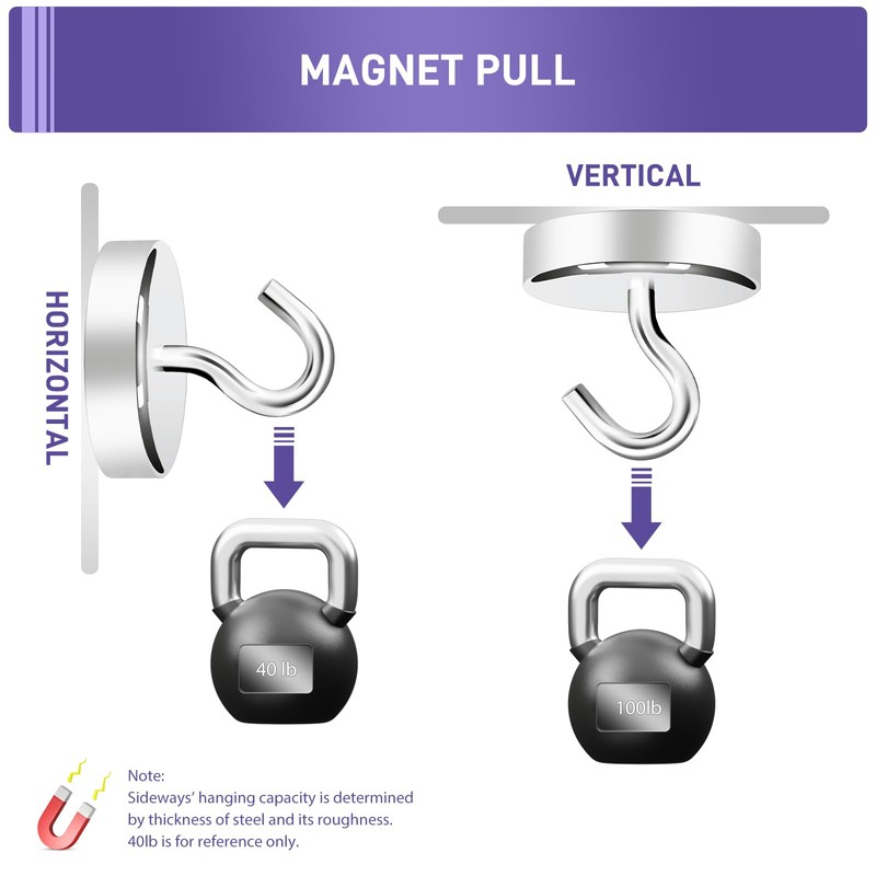 - ✔MAGIC STEEL TUBE DESIGN - Unique design of steel tube inside the base of magnetic hooks greatly increases the attractive force , especially on thin steel! It increase approximately 20% force comparing those none-tube magnets. it solves the problem of weak force on thin steel. Permanent magnetic hook with magic steel tube, strong magnetism lasts forever!