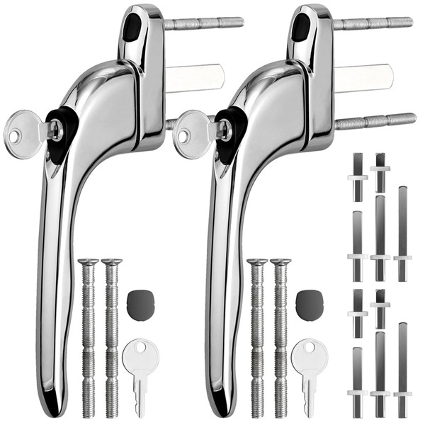 Neoteck 2PCS Inline Window Handle, Universal Espag Key Locking, Lockable Double Glazing, Secure and Durable, Ideal for All Standard Windows and Balcony Doors, Chrome