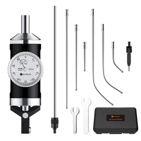 - 【Complete Package】Coaxial Centering Indicator x 1, Restraining Rod x 1, Center Point Feeler x 1, 2", 4" & 6" straight feeler x 1, 2", 4" & 6" curved feeler x 1, Wrech x 2, User Manual x 1, Storage Box x 1. A must-have tool set to meet your needs!