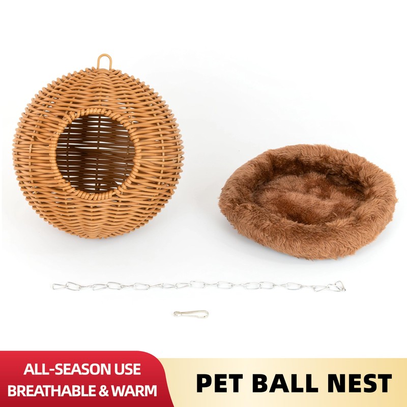 - Convenient and Versatile: With a sturdy iron chain hook, the nest can be easily hung in your pet's enclosure, saving space and simulating their natural tree-dwelling lifestyle. It’s also suitable for other small pets like parrots, fancy mice, and squirrels, making it a versatile addition to any small animal habitat.