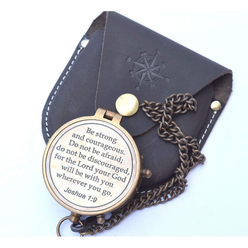 - NEOVIVID Be Strong And Courageous Engraved Compass, Confirmation Gift Ideas, Baptism Gifts.