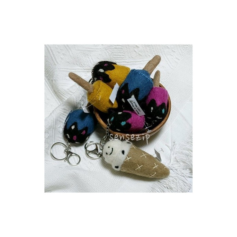 Nepal wool ice cream key ring doll bag ring, stick ice blue