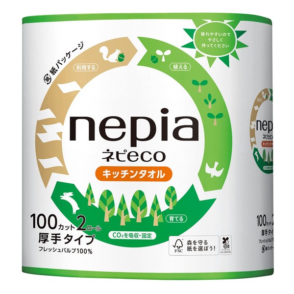Nepia Nepi Eco Kitchen Towel, 2 Rolls, 100 Cut