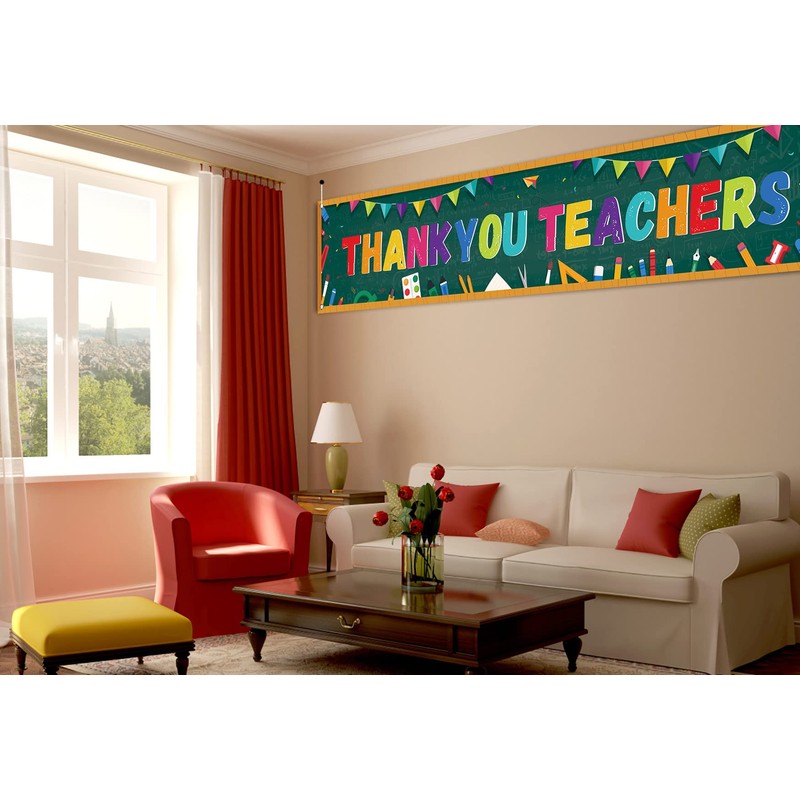 Nepnuser Thank You Teachers Large Banner Teacher's Appreciation Day Classroom Hanging Sign Bulletin Board and Wall Decoration