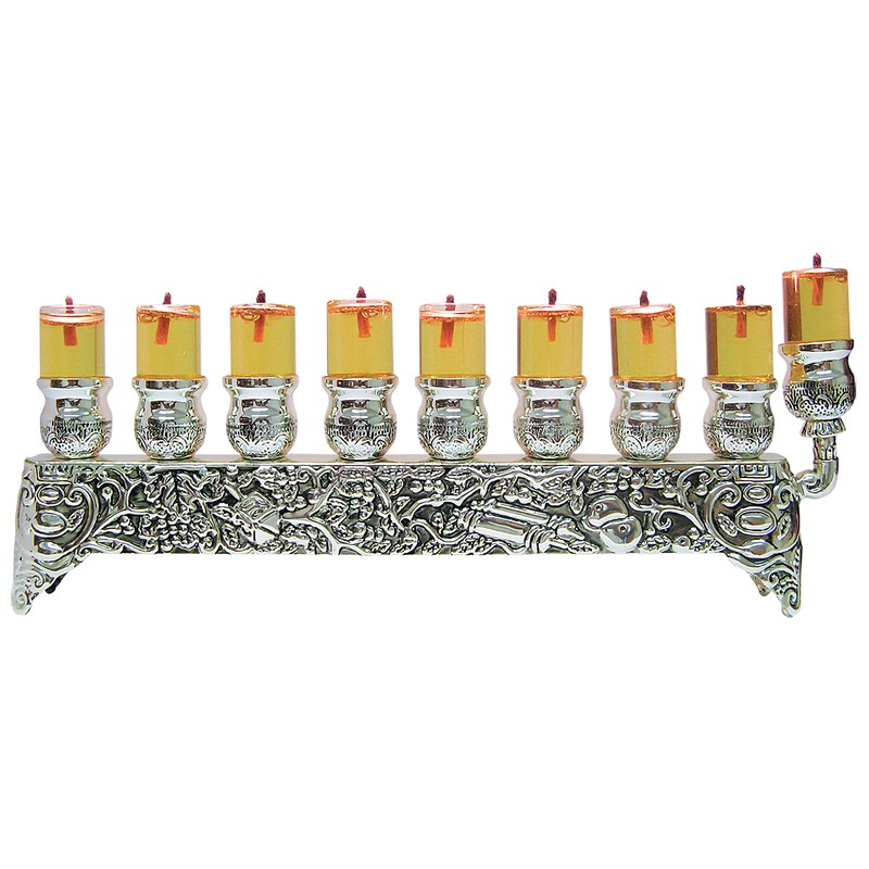 - Las menoras de aceite tienen tazas más grandes para ser llenadas con aceite de oliva, o velas grandes más anchas.