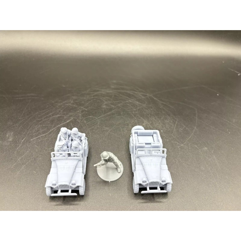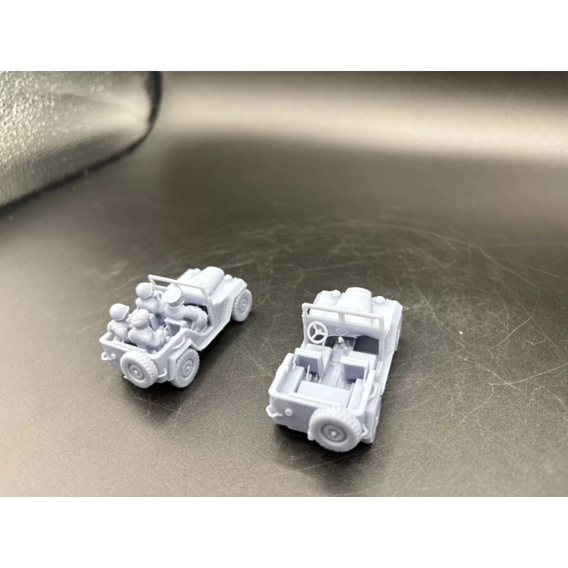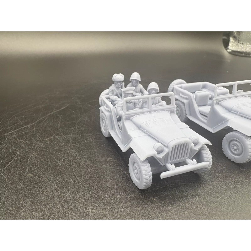 This is a 2 piece set , unpainted 28mm, 1/56 scale, WW2, Russian GAZ-67 jeep, open. There are 2 jeeps in this set, one with crew and one without. The crew figures are printed in place , they are one single piece. Vehicles are by Eskice Miniature 3D. We are 3D printing these under license from them. What you see in the pics is what you get. Figures come not glued to bases, we glued them for picture purposes only. The plastic Russian figure is a Warlord Games figure for size purposes only and not included. Some assembly and cleaning is required, CA glue is recommended. Those of you who are into the printing process, we have slightly increased the size of some figures from the original file to make a fuller and sturdier figure in our opinion, vehicles are at original size. For those of you not familiar with resin 3D printed figures, they are a little more fragile than the plastic figures available, but are still a sturdy figure if handled carefully. We will have many more figures and vehicles coming as well as painted versions. Please feel free to contact me with any questions. look for many more products like this in our store.