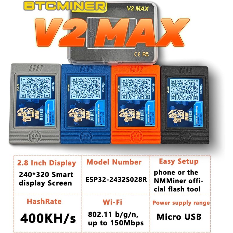 NerdMiner V2 MAX Bitcoin Miner Machine- 400KH/s Bitcoin Asic Miner Win 6.25 BTC Solo Lottery Miner with Low Power Consumption 2.4G WiFi Connection (with Type-C Cable )