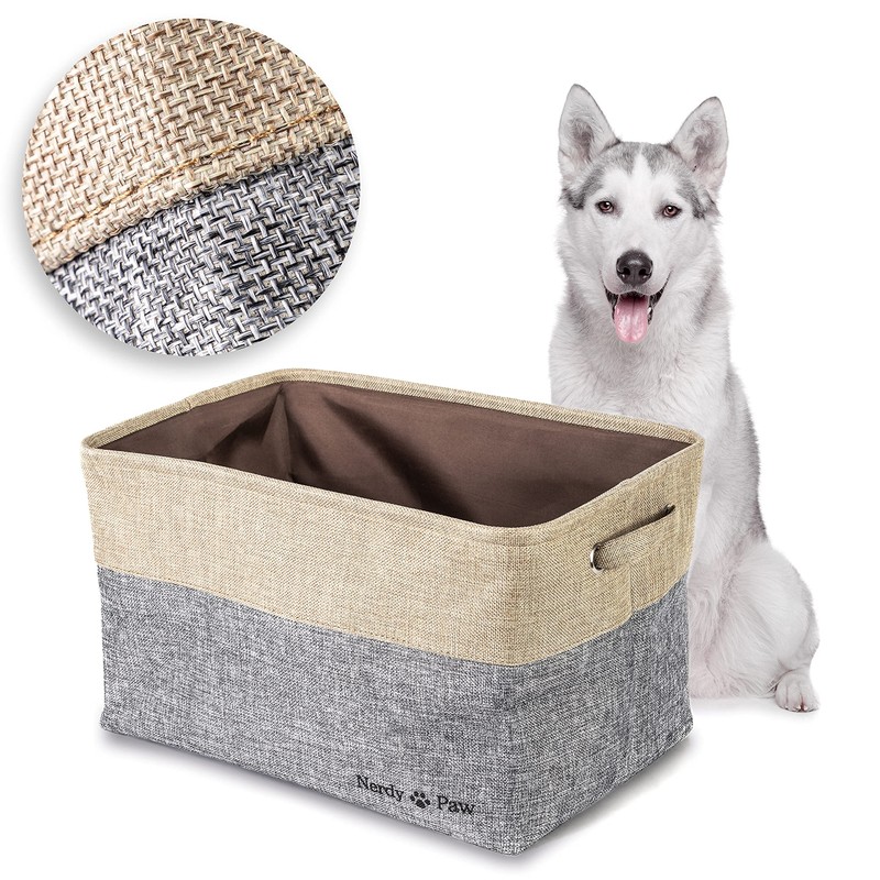Nerdy Paw Dog Toy Basket - Medium - Collapsible Storage Bin & Organizer for Cat and Puppy Toys and Grooming Accessories - Pet Supplies Box with Handles