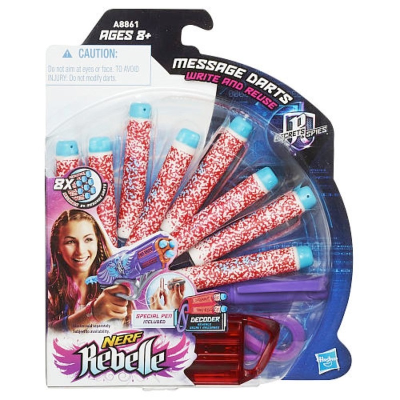 When you’re on a secret mission, secret messages are key, and that’s why you need the Message Dart refill! You can write secret messages with the special pen on the 8 Message Darts, and conceal them until it’s time to reveal them. Then you can erase the messages and write new ones! Without the double decoder, nobody will be able to guess your secrets! Nerf and all related characters are trademarks of Hasbro.