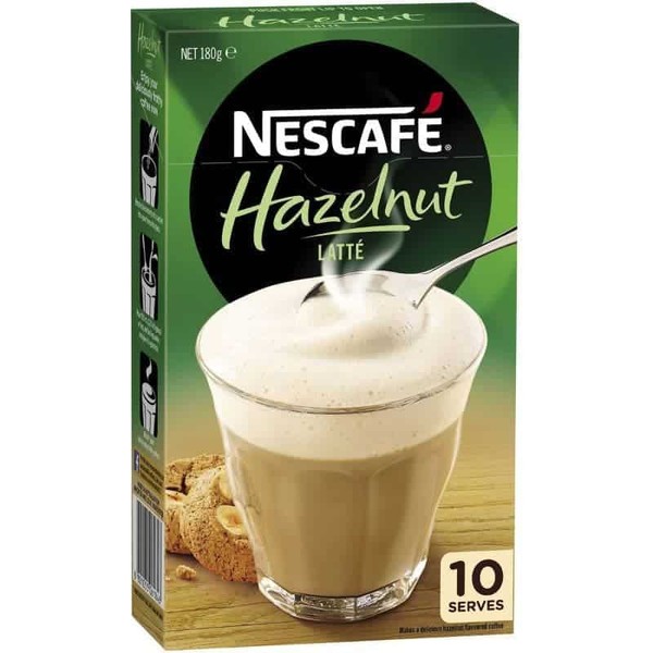 Nescafe Coffee Sachets Hazelnut Latte 10 Pack Bulk Buy.