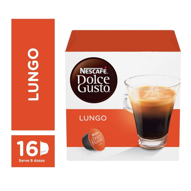 - 16 count box of Nescafe Dolce Gusto Caff Lungo Capsules