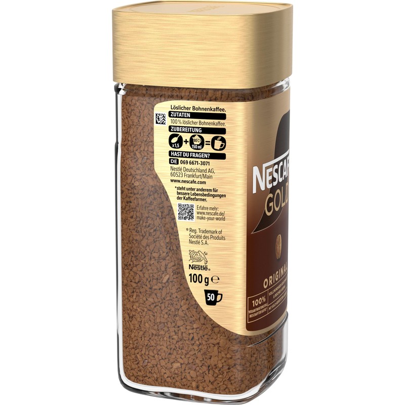 - Box contents: 1 x 100 g Gold original soluble bean coffee from NESCAFÉ for about 50 servings