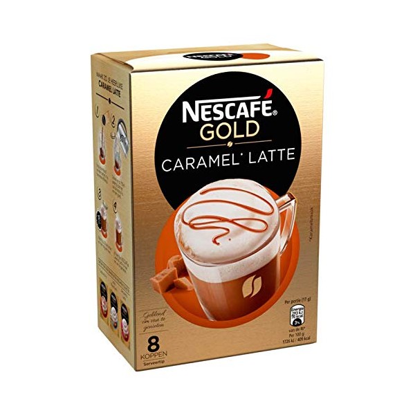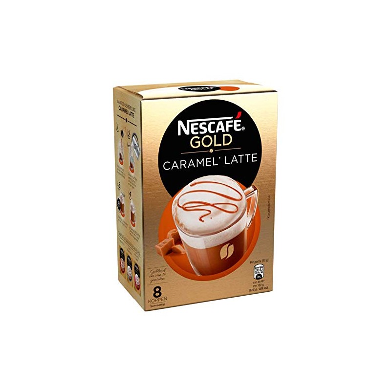 Take a moment for yourself and enjoy Nescafé Gold Caramel Latte. Treat yourself or others to a sweet escape from everyday life. Nescafé Gold Caramel Latte brings you a fantastic latte with a hint of caramel taste, wonderful to enjoy at home. Use and safety: Recycling: Box: Paper - Usually recycled Storage: Keep cool and dry. Best before the end: see packaging. Allergy warning: Contains Lactose, Contains Milk